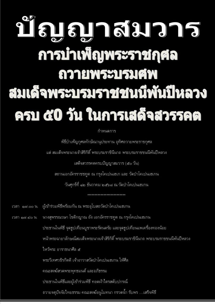 บำเพ็ญบุญปัญญาสมวาร 50 วันพระราชชนนีพันปีหลวง