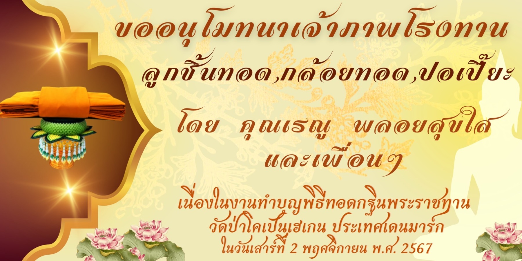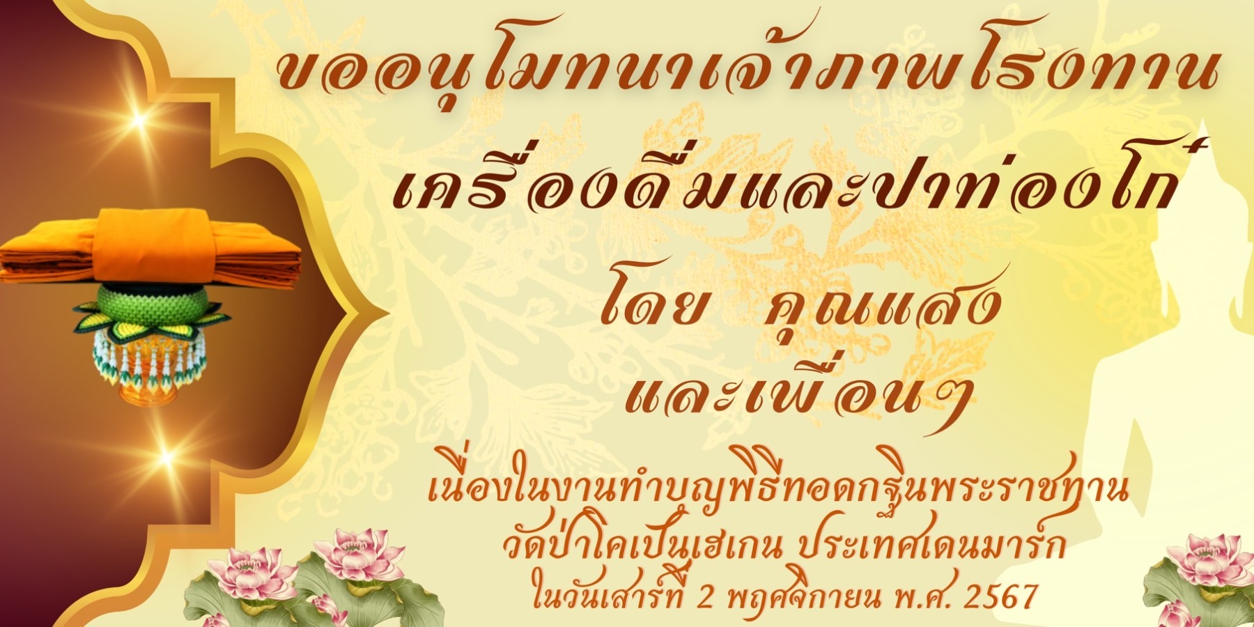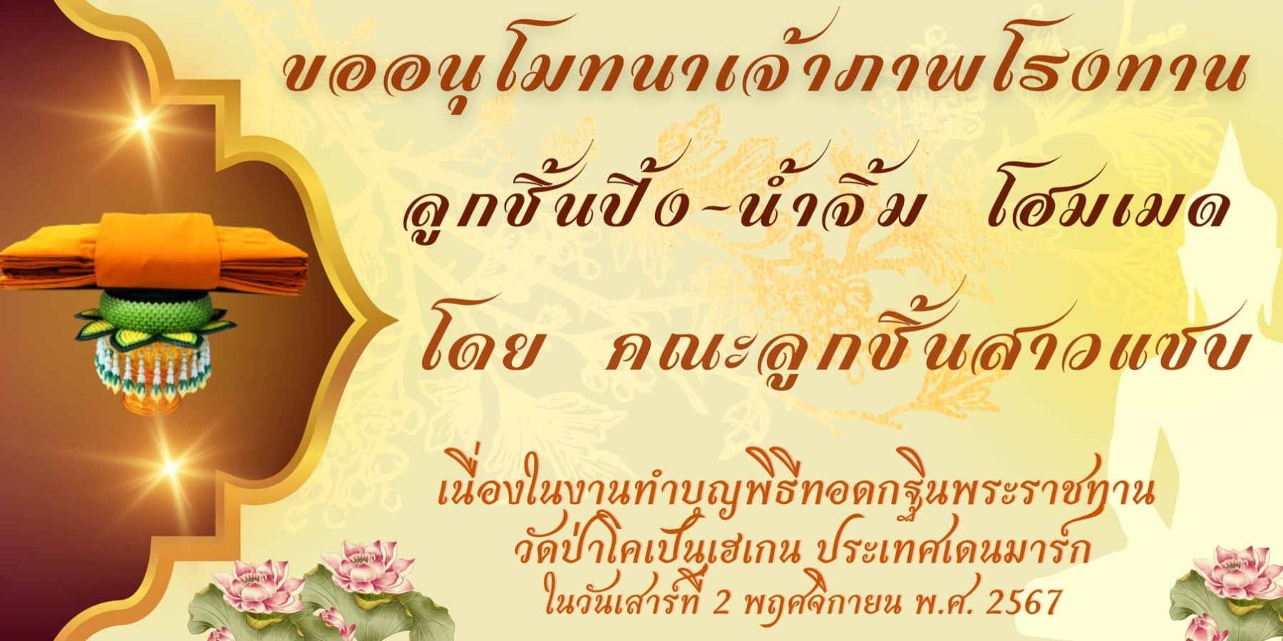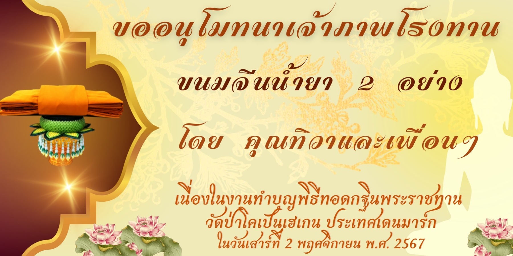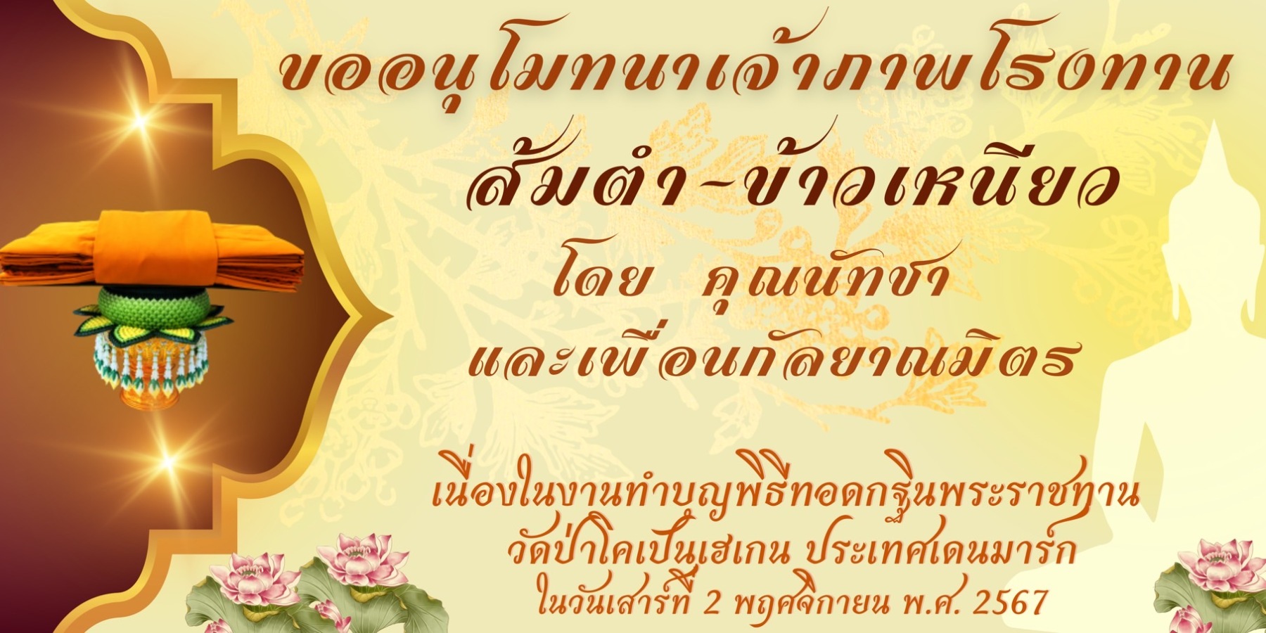ขอเชิญร่วมบุญมหากุศล ถวายผ้าพระกฐินพระราชทาน
