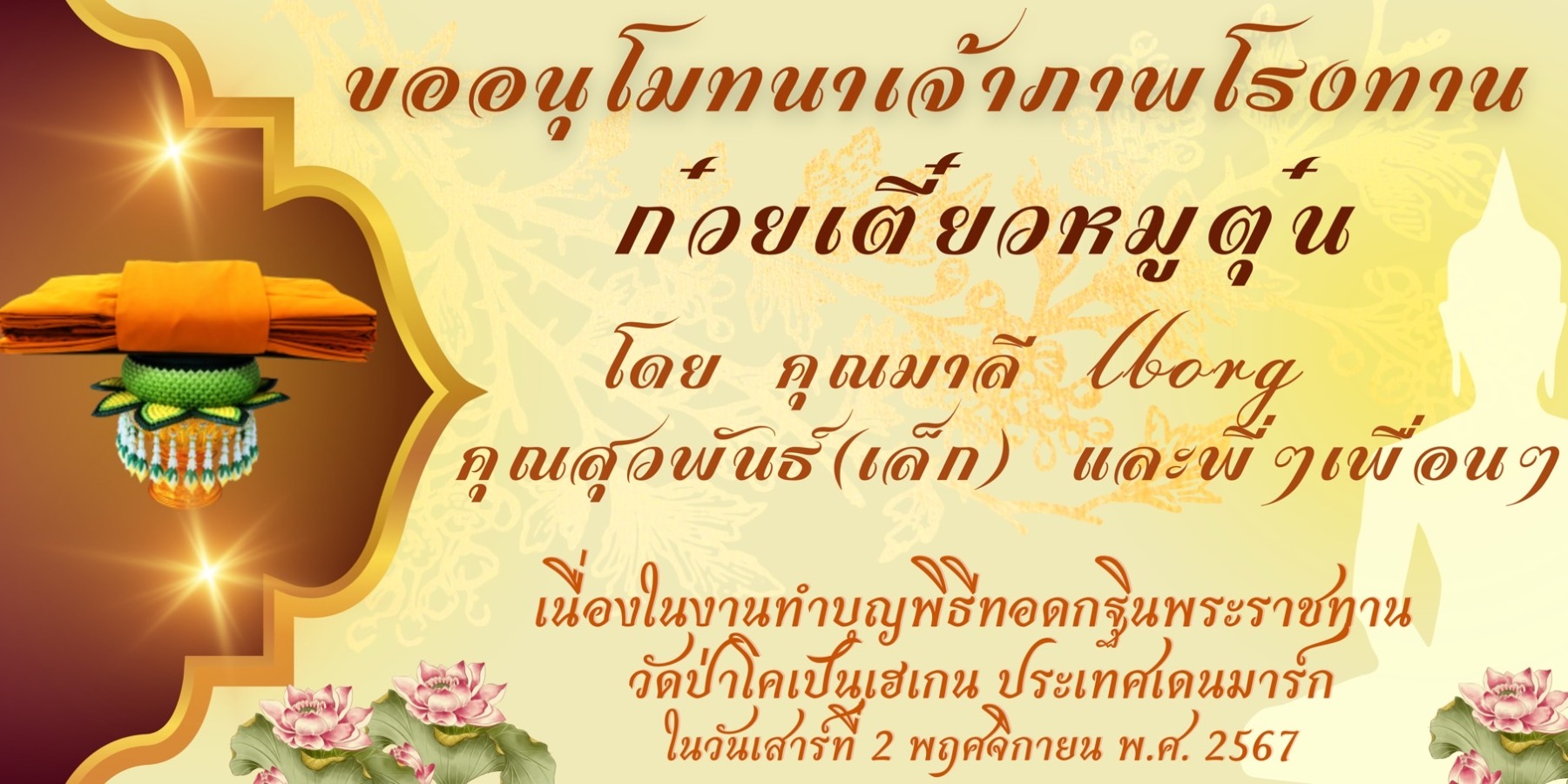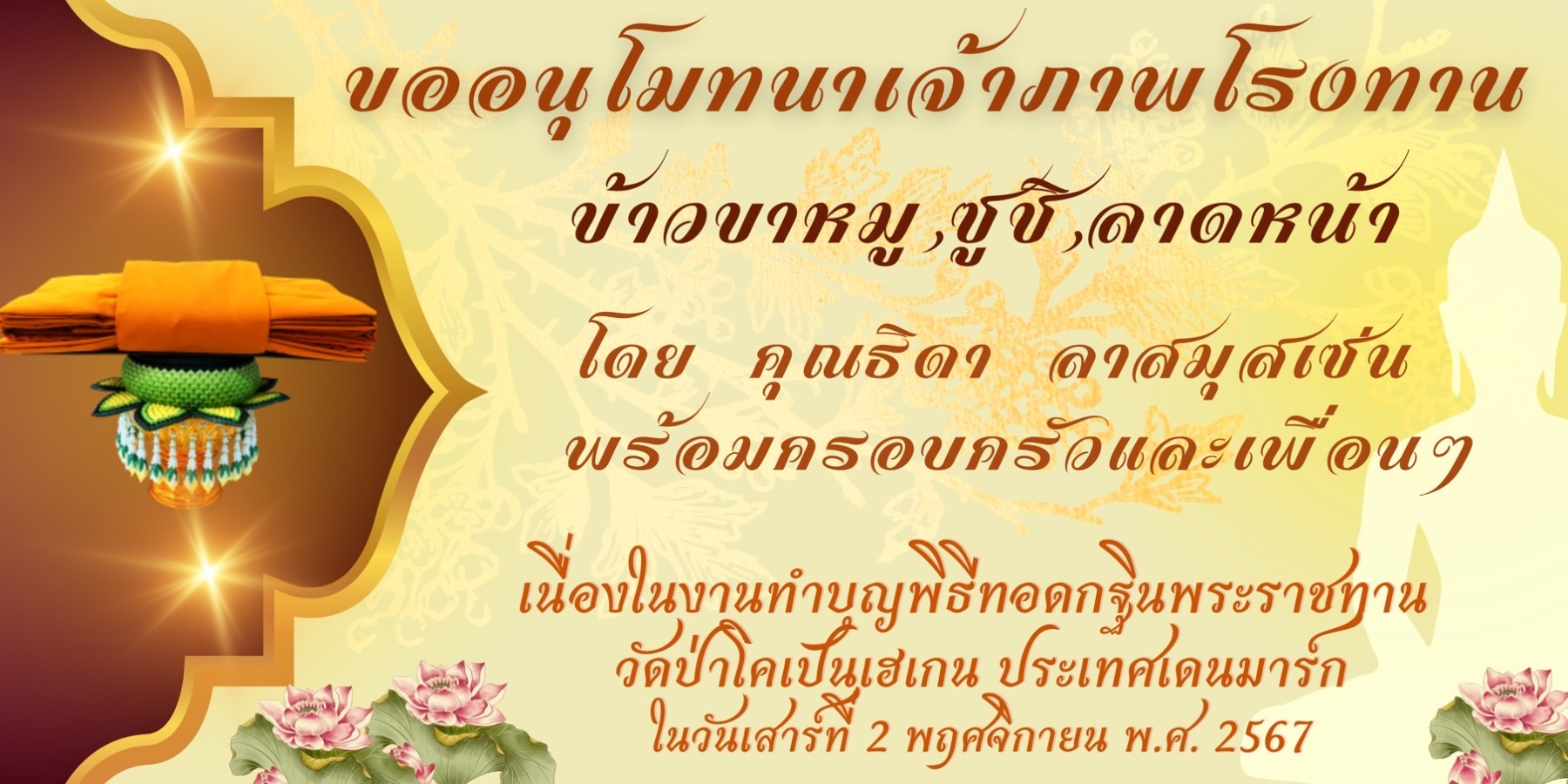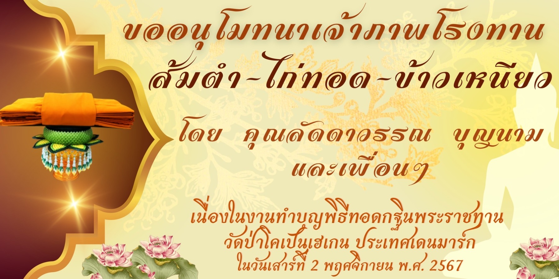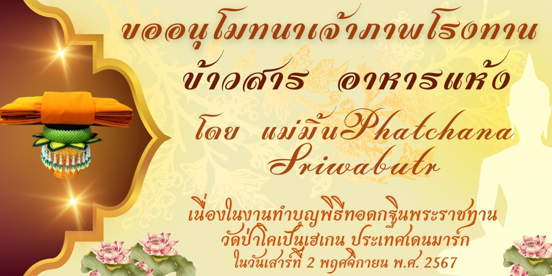 ขอเชิญร่วมบุญมหากุศล ถวายผ้าพระกฐินพระราชทาน