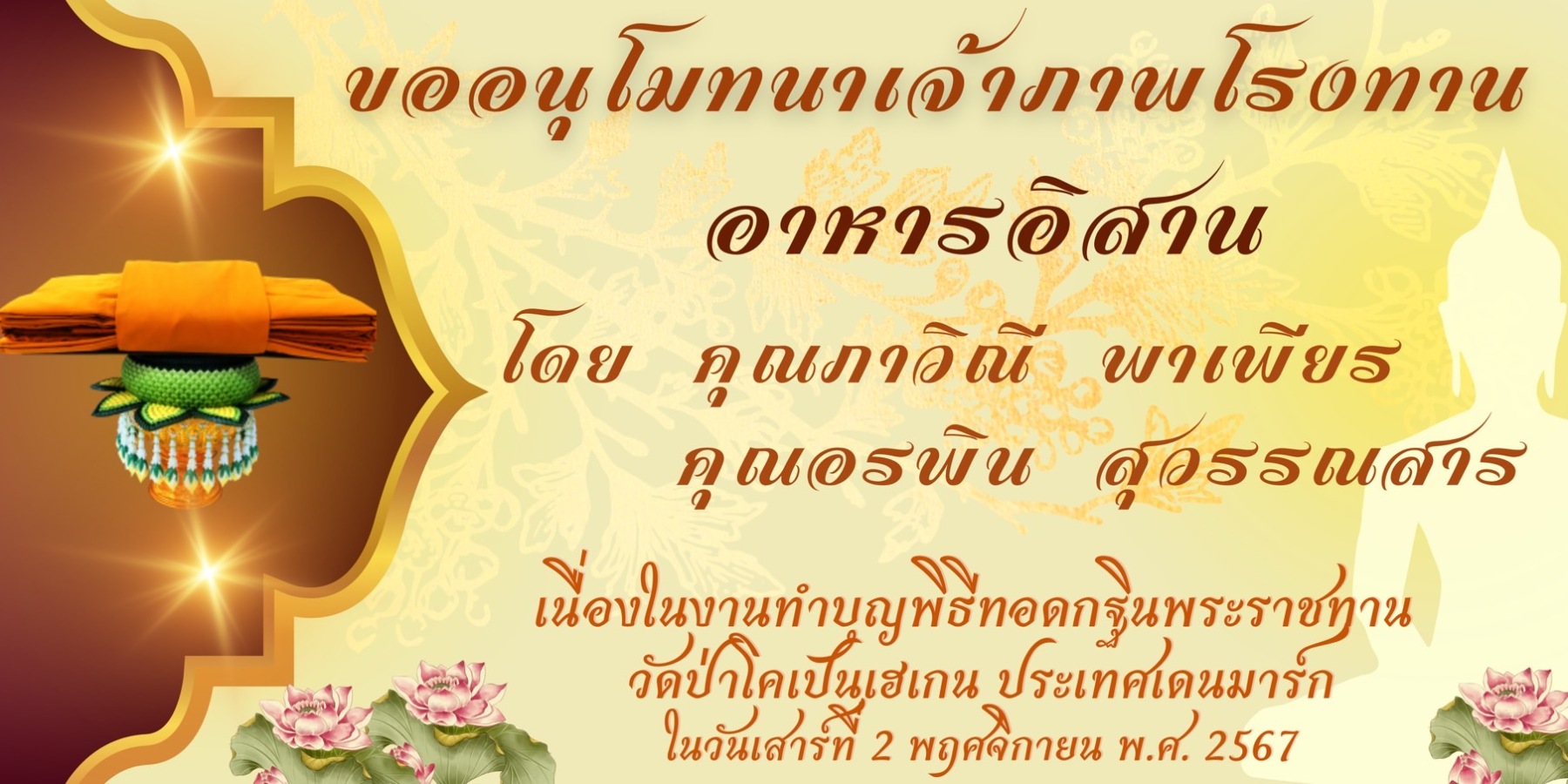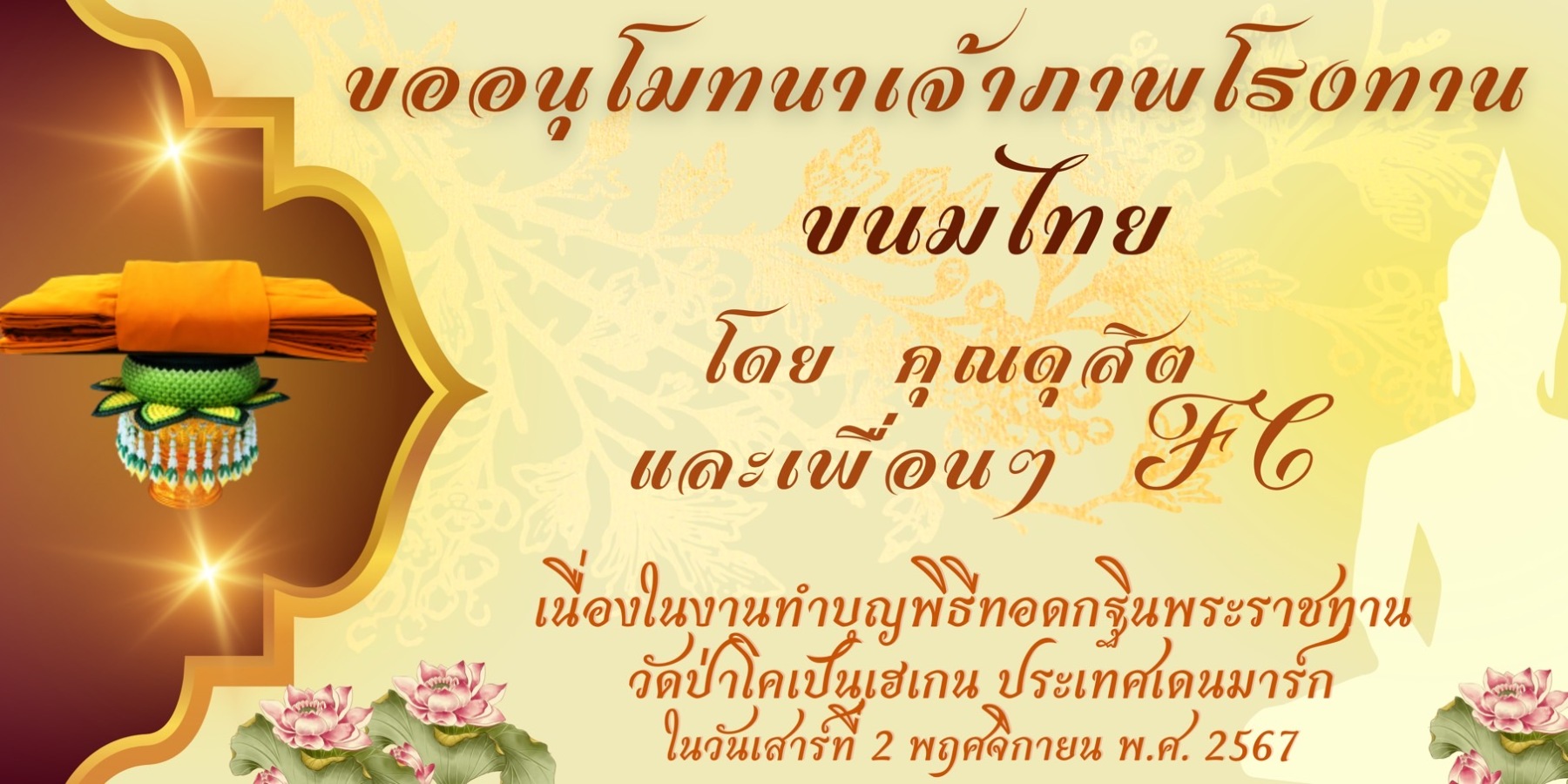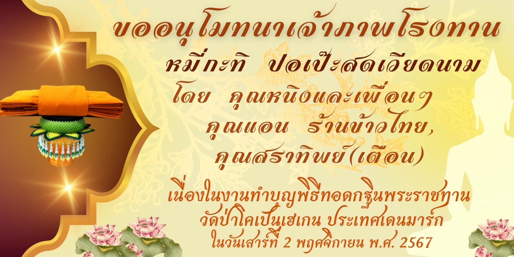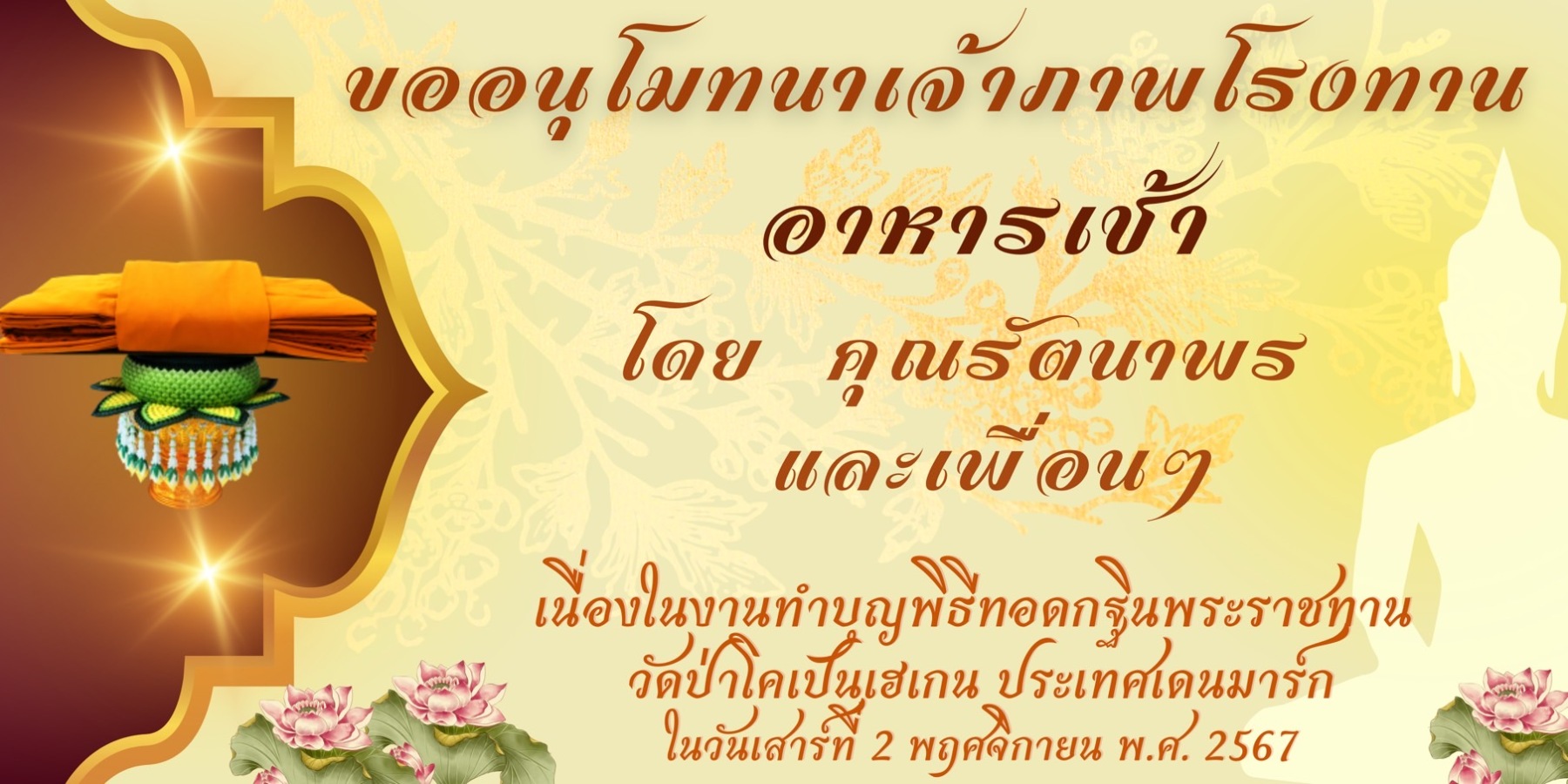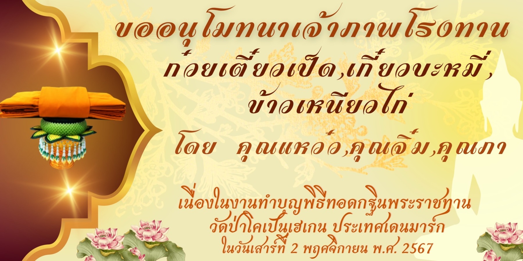 ขอเชิญร่วมบุญมหากุศล ถวายผ้าพระกฐินพระราชทาน